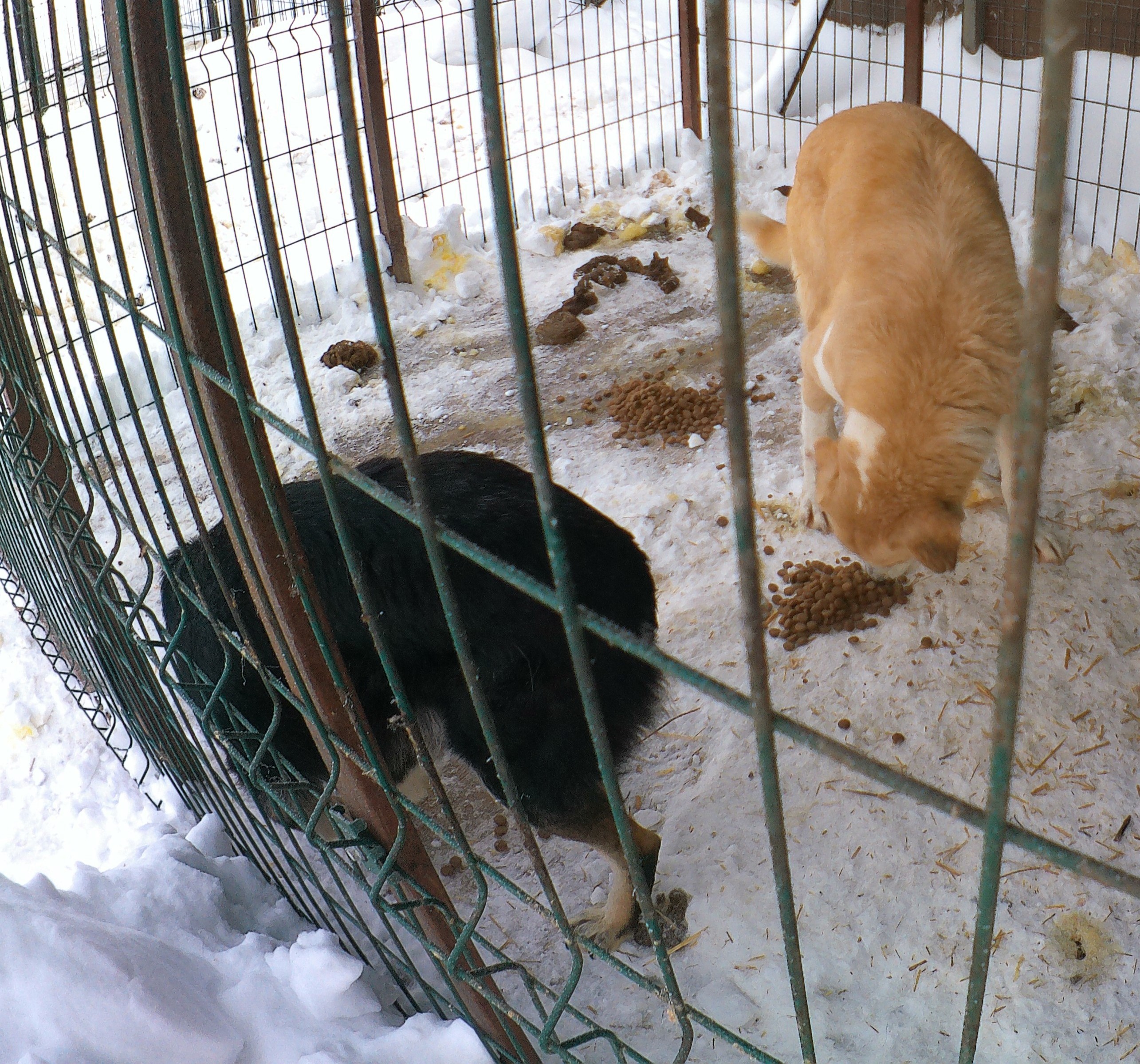 Сука черная с подпалом 7 лет слева и рыже-белая сука 6 лет справа